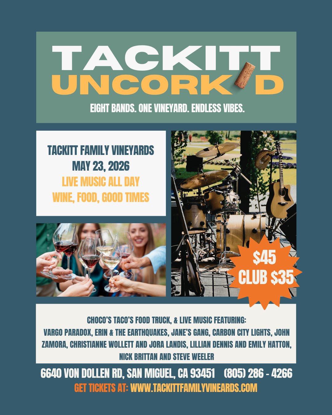At Tackitt Family Vineyards, we craft small-lot, estate-driven wines that reflect our family heritage, our military roots, and the beautiful land we call home in San Miguel. As a proud veteran-owned winery, we’re dedicated to warm hospitality, meaningful connections, and giving back through our support of the EOD Warrior Foundation.